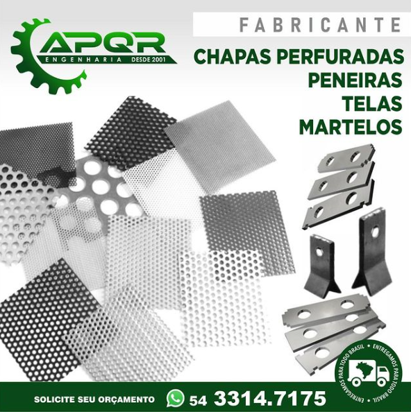 Fabricamos chapas perfuradas, peneiras e telas para utilização em pedreiras, fábricas de rações, silos , fábricas de alimentos , cooperativas, moendas, cervejarias, entre outros.
